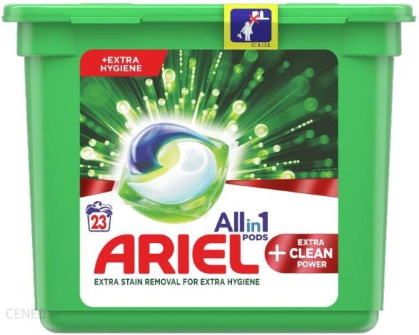 Ariel Extra Clean – kapsułki do prania Wysoce skoncentrowane kapsułki do prania o unikalnej konstrukcji, która utrzymuje składniki oddzielnie i stabilnie, dopóki nie wejdą w kontakt z wodą podczas prania, gdzie całkowicie się rozpuszczają i uwalniają zaawansowane i innowacyjne technologie. Kapsułki Extra Clean Power są skuteczne nawet w niskich temperaturach (20°C). Detergent w kapsułkach zapewnia higieniczną czystość oraz chroni tkaniny przed blaknięciem. Ostrzeżenie dotyczące bezpieczeńst
