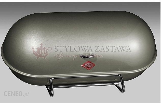 CHLEBAK WESCO Breadboy Akcesoria kuchenne Wesco z amerykańskim designem, produkcji Niemieckiej, staną się ozdobą Twojej kuchni. Ich trwałość jest wieloletnia, nawet przy codziennym użytkowaniu. Dzięki temu produkty Wesco docenią nie tylko amatorzy designu, lecz także osoby dbające o środowisko. Gwarancję jakości zapewnia 150 lat doświadczenia firmy Wesco w obróbce i przetwarzaniu stali. Chlebak dla miłośników stylu retro. Idealny również do przechowywania pieczywa dla całej rodziny. Sprawdzi się jako ozdoba stylizowanej kuchni. Wyprodukowany z wysokiej jakości stali nierdzewnej malowanej proszkowo Właściwości: – Szerokość: 44,3 cm – Głębokość: 23 cm – Wysokość: 21 cm – Wykonany z wysokiej jakości stali nierdzewnej malowanej proszkowo – w stylu z lat 40-stych – Wyprodukowany w Niemczech – Wyprodukowany z dbałością o szczegóły – Kolor: ciepły szary