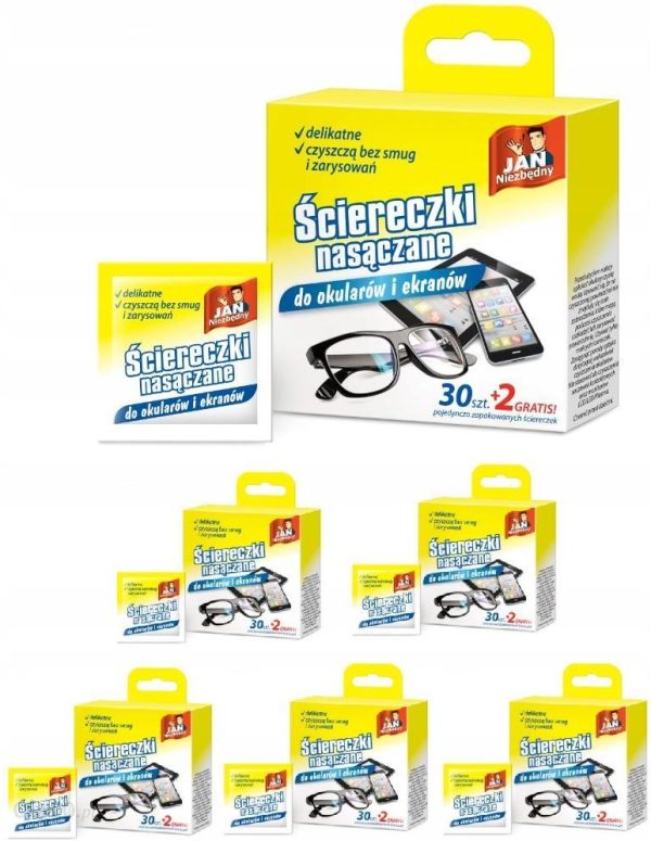 Nasączane ściereczki przeznaczone do czyszczenia okularów i ekranów.Są delikatne,czyszczą bez smug i zarysowań.Opakowanie zawiera 30 pojedynczo zapakowanych ściereczek.