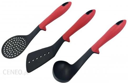 3 elementowy zestaw nylonowych przyborów kuchennych firmy KLAUSBERG. Przybory polecane szczególnie do naczyń z powłokami ceramicznymi i teflonowymi. Materiał z którego są wykonane nie rysuje powierzchni naczyń. Jest odporny na wysoką temperaturę do 210 stopni C. Ergonomiczny kształt rączek sprawia, że przybory pewnie i wygodnie trzyma się w dłoni. Wysokiej jakości tworzywo, z którego wykonane zostały sztućce jest odporne na wysokie temperatury. Przybory nie tworzą zarysowań na powierzchni naczyń. Praktyczne ukształtowanie na łączeniu uchwytu umożliwia oparcie przyboru na krawędzi garnka. Materiał wykonania: NYLON TERMOPLASTYCZNY odporny na wysoką temperaturę do 210 C. Elementy zestawu: – chochla do zupy – łopatka perforowana – łyżka szumówka