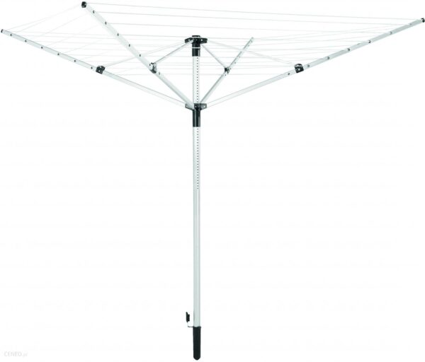 Leifheit Suszarka ogrodowa LinoPush 400 (85355). Projektanci firmy Leifheit tworząc suszarkę ogrodową Linopush 400 mieli na celu połączenie niewielkiego rozmiaru tego modelu z maksymalną pojemnością. Postawili na wytrzymałą konstrukcję i praktyczne rozwiązania. Model Linopush 400 został wykonany z aluminium oraz elementów z tworzywa sztucznego. Całość jest odporna na warunki atmosferyczne oraz promieniowanie UV. Suszarka stoi stabilnie nawet przy pełnym obciążeniu oraz silnym wietrze.