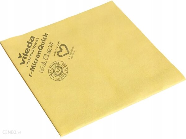 VILEDA PROFESSIONAL Magiczna ściereczka do szybViileda Professional ściereczka Micron Quick to najlepsza ścierka firmy Vileda do mycia, polerowania szyb, luster i innych gładkich powierzchni.Nazywana jest przez użytkowników magiczną ściereczką.Znakomite właściwości ściereczki uzyskano dzięki nowej, rewolucyjnej, technologii Micron Fibre Technology.Vileda Professional MicronQuick oferuje szereg zalet w codziennym użytkowaniu:jakość czyszczenia i polerowania najwyższej klasy dzięki Micron Fibre Technology99,99% usuwalności bakterii i zarazków (certyfikat BMA w załączeniu)czyszczenie bez zanieczyszczeń, kurzu i włókienudoskonalona odporność na ścieranieusuwanie 99,86% BCoV z powierzchni (przetestowane przez zewnętrzny instytut)możliwość prania w temperaturze 95 stopnizachowanie właściwości nawet po 120 praniach w temp. 95 Cbrak uczucia suchości skóry dłoni jak po użyciu ścierki z mikrofibryOpakowanie zawiera 1 szt. ściereczki w kolorze niebieskimProducent: Vileda Professional
